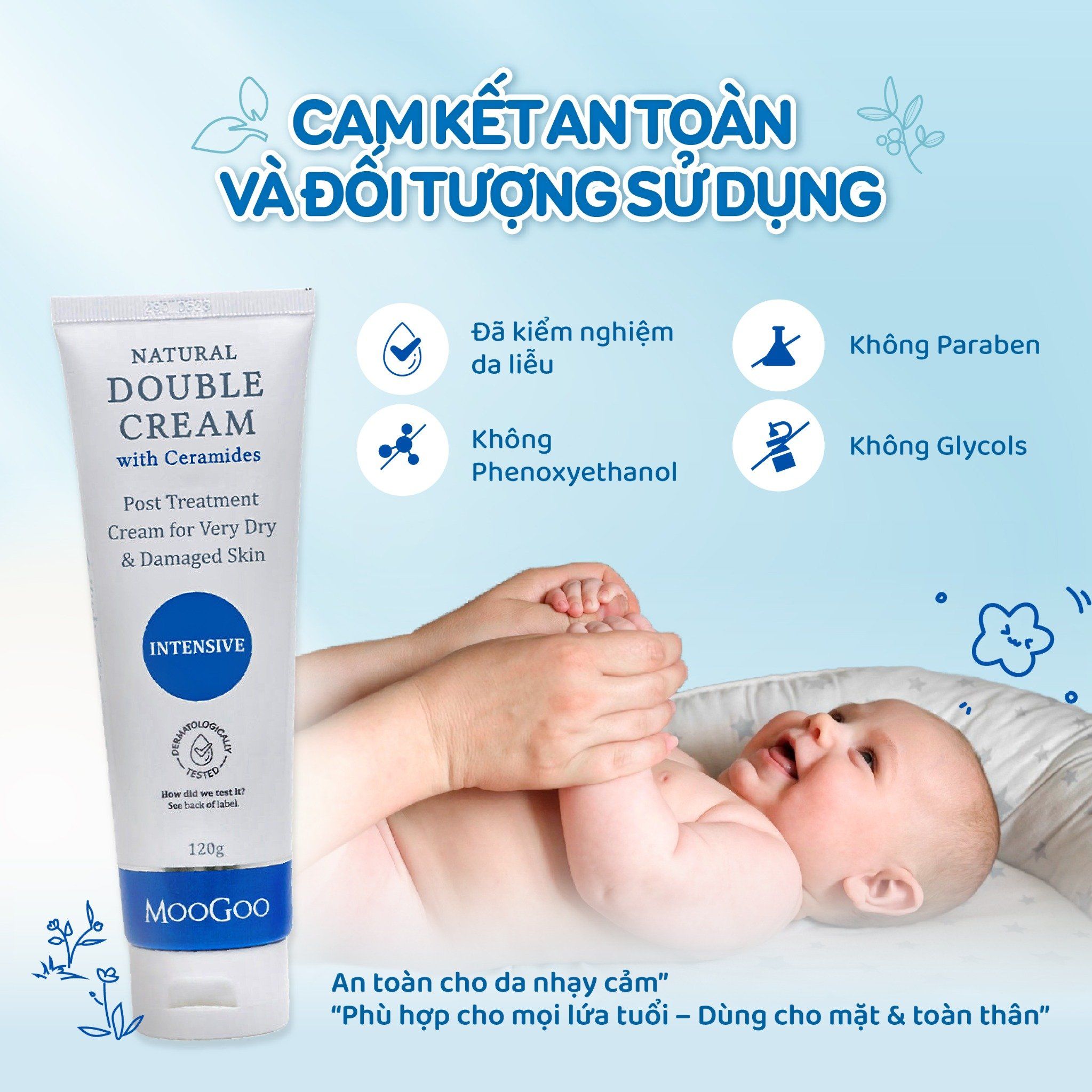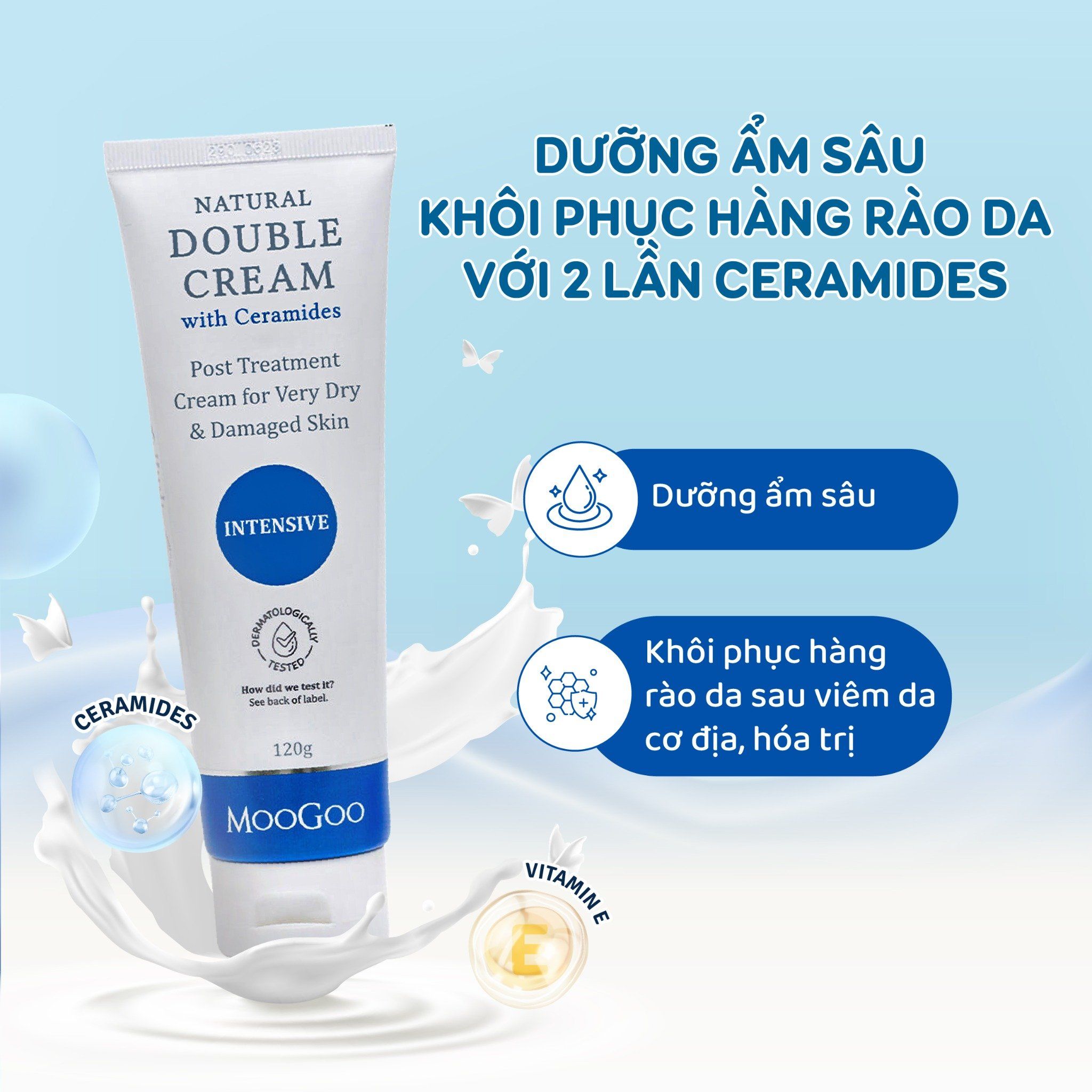 MooGoo Double Cream được thiết kế dựa trên nguyên lý phục hồi hàng rào bảo vệ da với 3 bước: