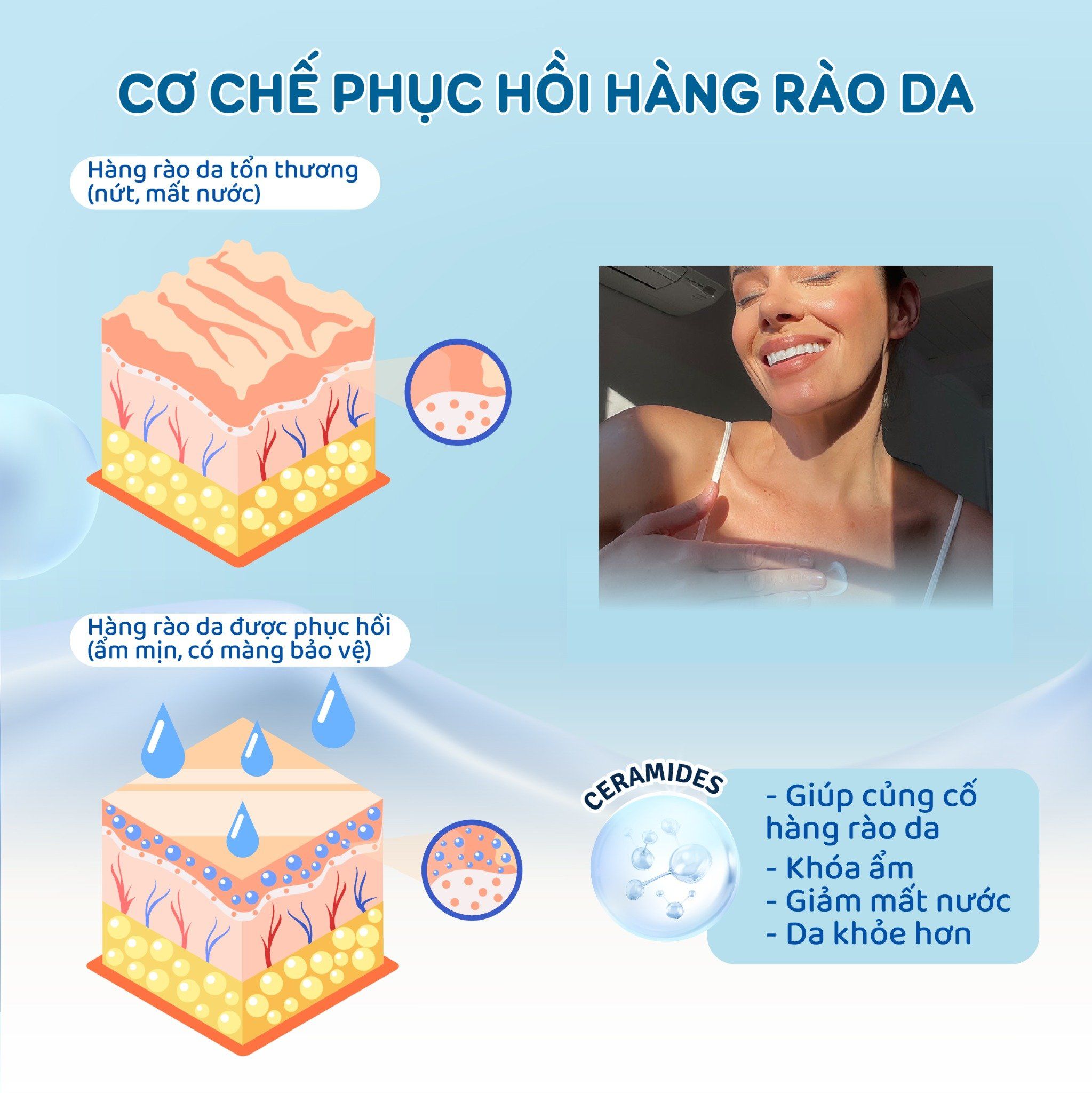 Một làn da khỏe mạnh có hàng rào bảo vệ vững chắc, giúp giữ nước và ngăn ngừa các tác nhân kích ứng từ môi trường. Khi hàng rào này suy yếu (do khô, viêm da cơ địa, xạ trị, hóa chất…), da sẽ mất nước nhanh hơn, trở nên bong tróc, căng rát, dễ viêm đỏ.